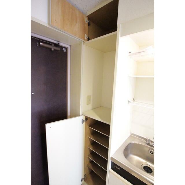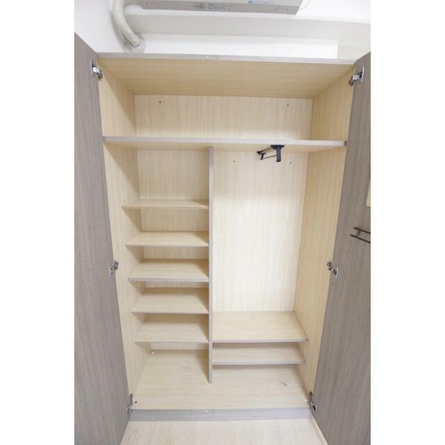 - コンパクトながら、収納が豊富です クローゼット 多段式の棚で整理もらくらく 吊り戸棚もあります
